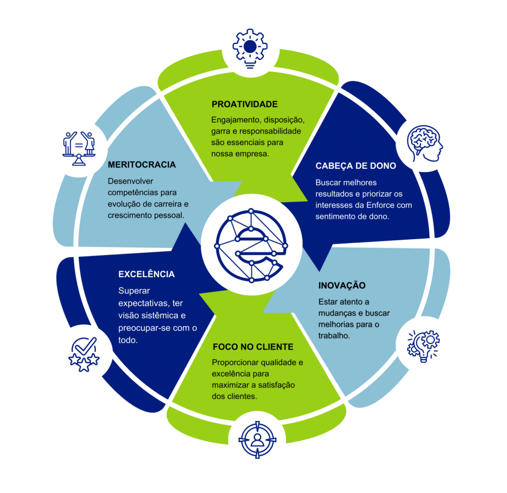 Foco em resultados, desenvolvimento pessoal e profissional e crescimento exponencial do negócio.